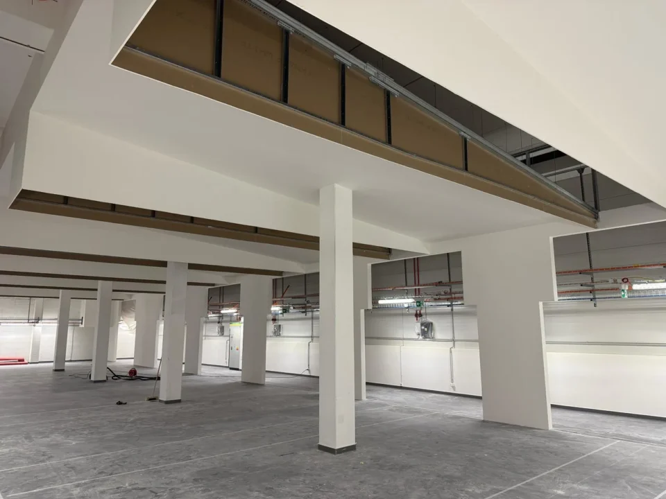 Od izolací spodní stavby, prefabrikovaných prvků a vyzdívek přes suchou výstavbu, výplně otvorů, fasádu a střešní skladbu až po kompletní fit-out interiéru. Součástí realizace byly i terénní úpravy a obslužné komunikace v areálu.